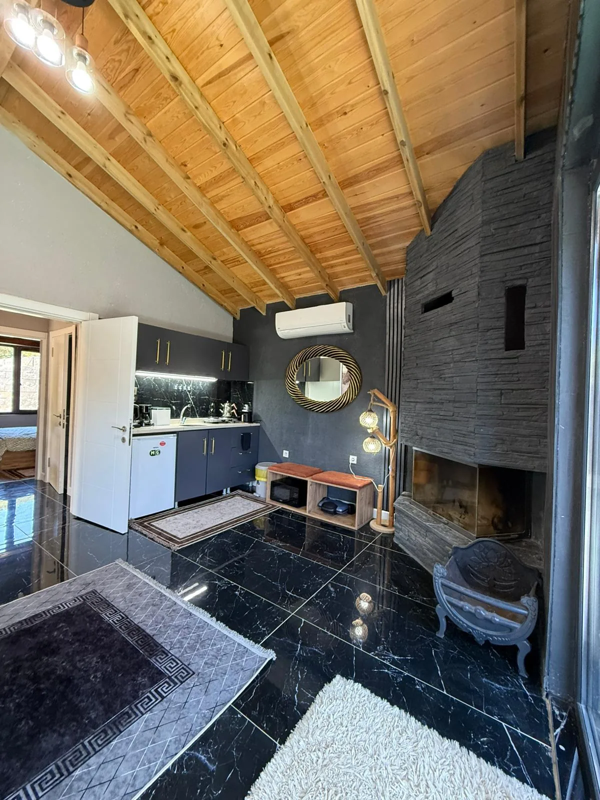 Şömine gerçekten çalışıyor, odun da hazır bırakılmıştı. Gece havuzda yüzerken yıldızlara baktık. Bir kez daha geleceğiz, bu sefer daha uzun kalmak istiyoruz.